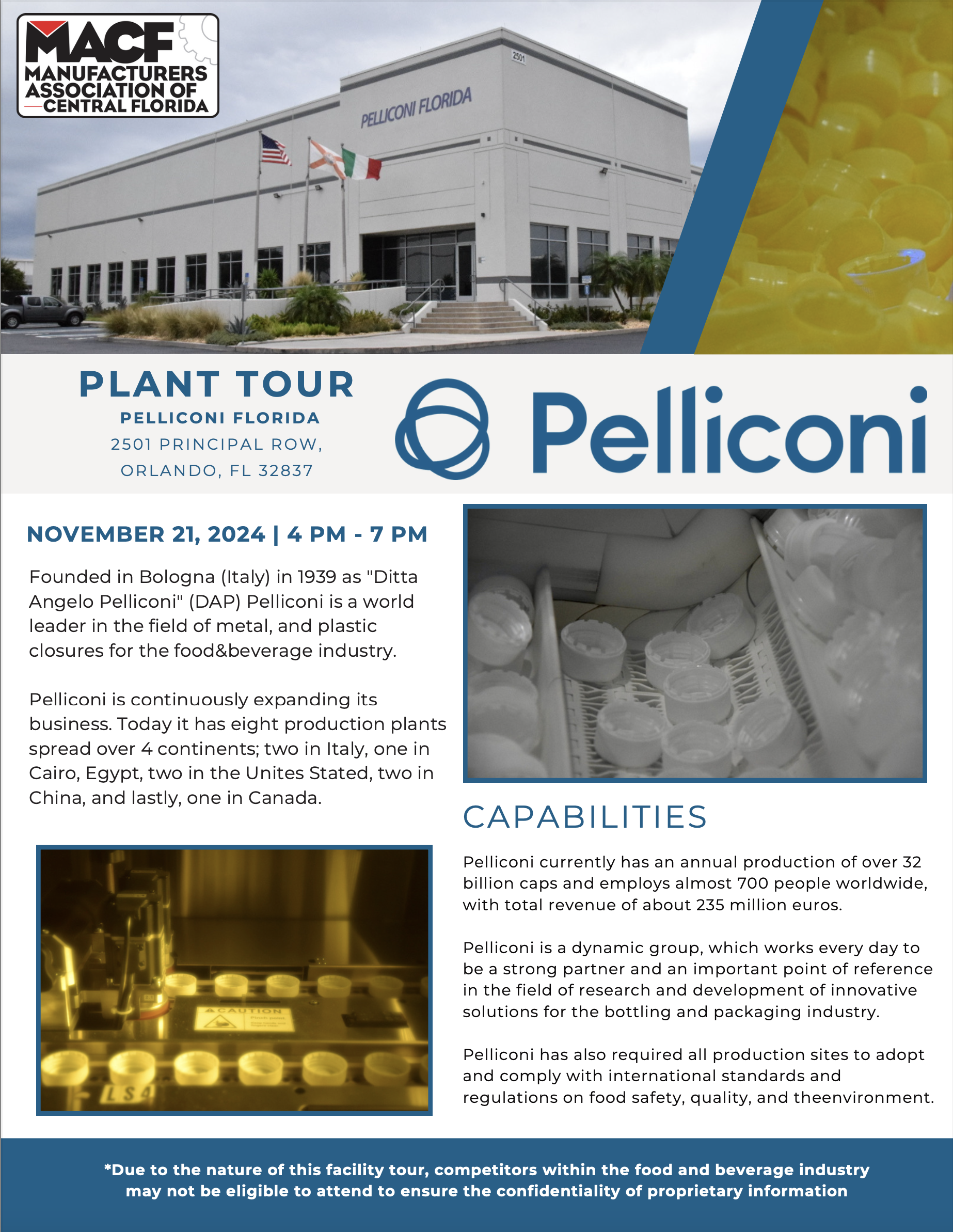 **Due to the nature of this facility tour, competitors within the food and beverage industry may not be eligible to attend to ensure the confidentiality of proprietary information. If you have any questions about eligibility to attend the tour, please contact Rachel Powley | Rachel.Powley@macf.biz